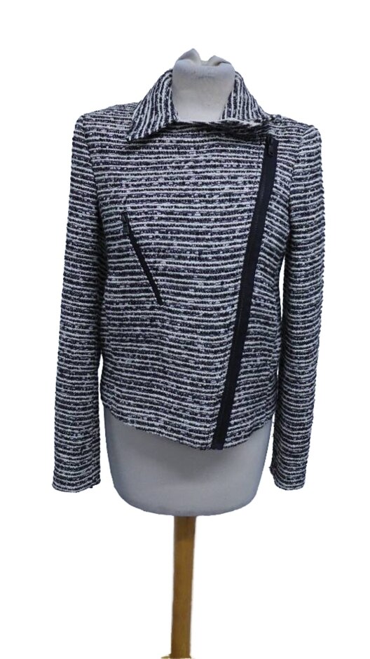 Zara Woman Striped Zip Up Blazer Black & White Size: Xs