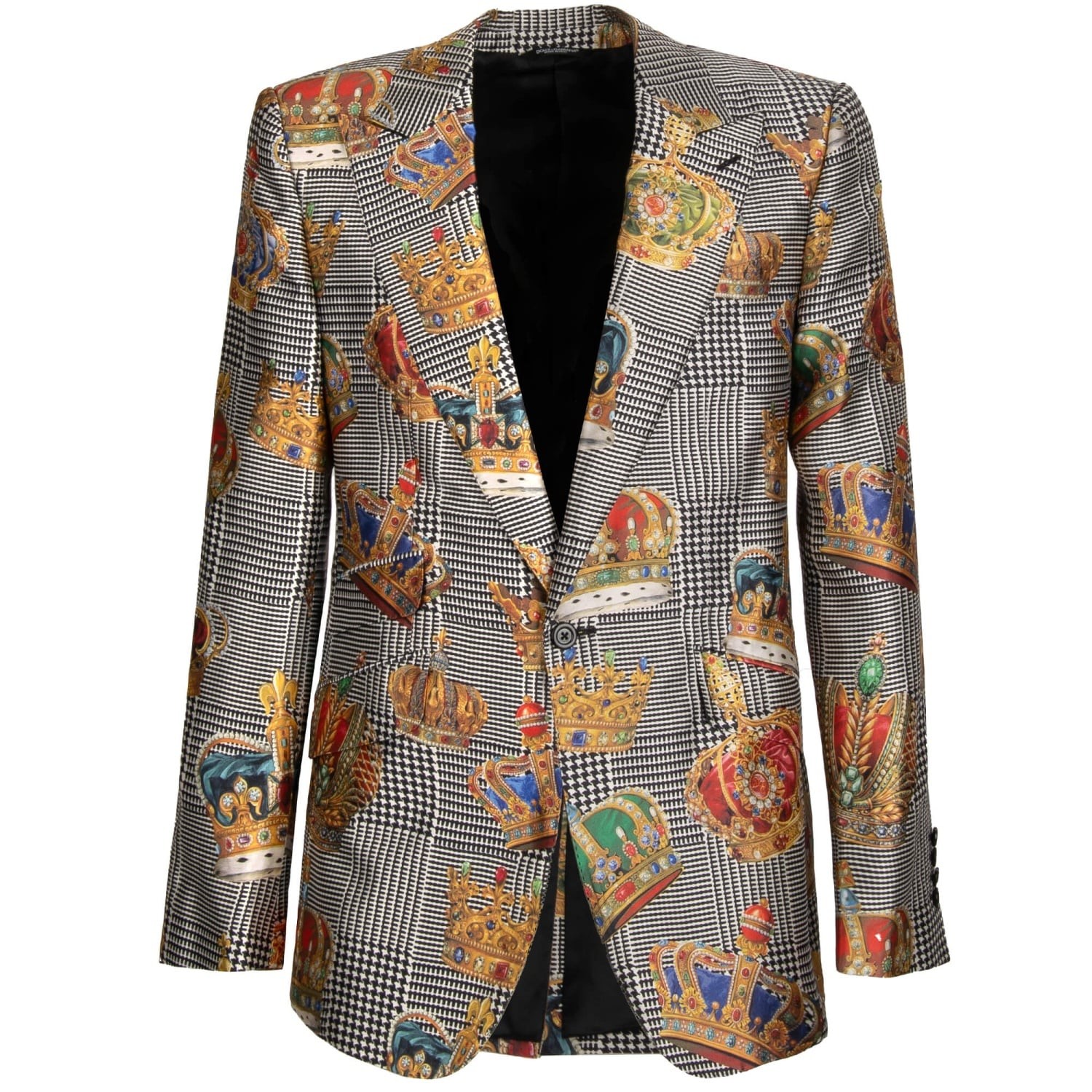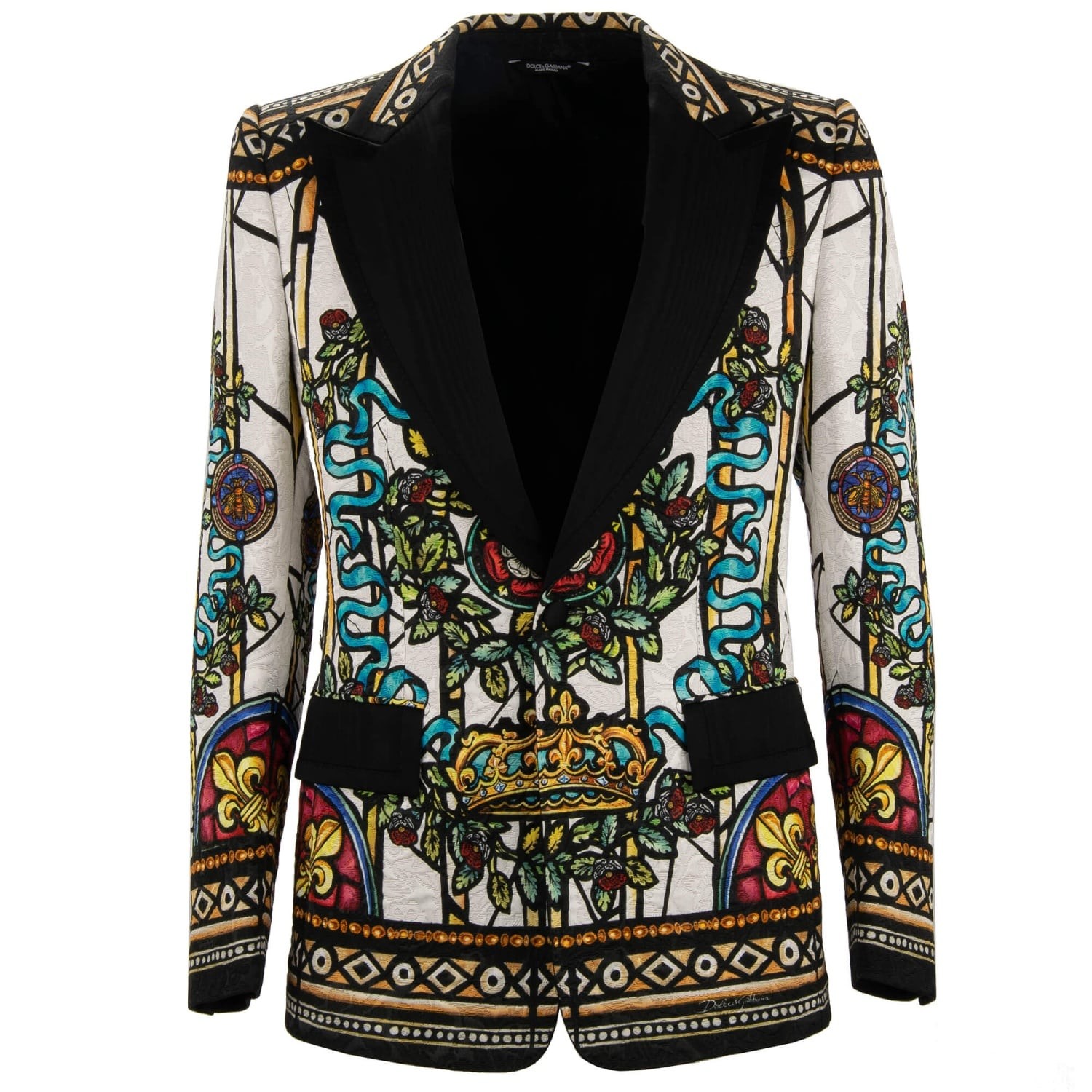 DOLCE & GABBANA Baroque Crown SICILIA Silk Blazer Jacket White Black 48 US 38 M