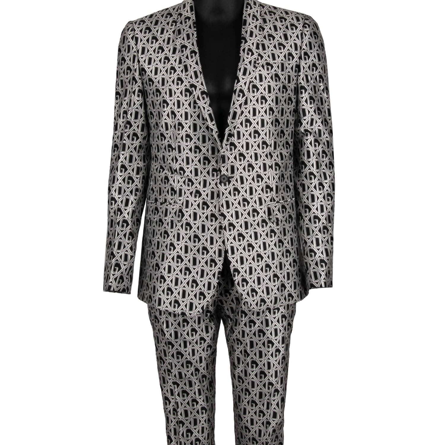 DOLCE & GABBANA DG Logo Silk MARTINI Suit Blazer Tuxedo Jacket Pants Black White
