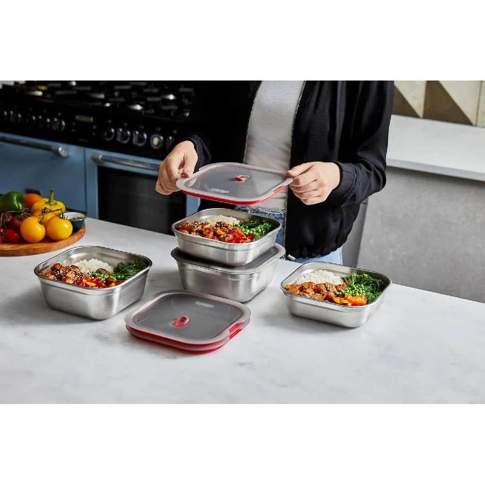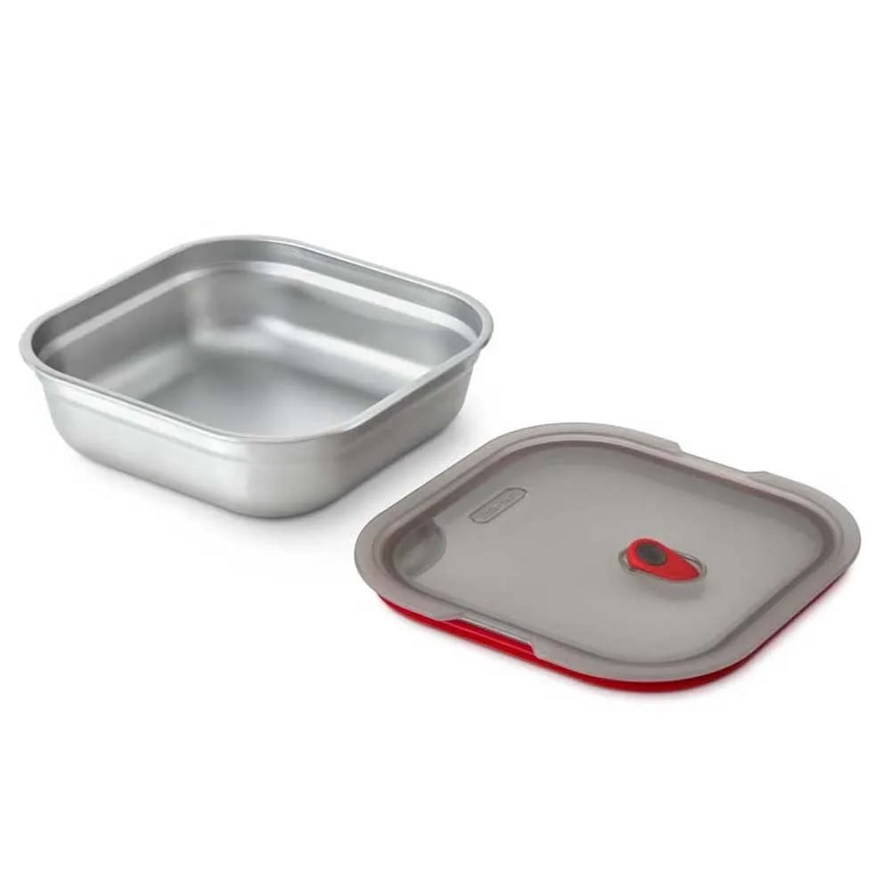 Black+Blum | Steel Food Box | 900ml / Grey/Red | Microwavable Lunch Bowl