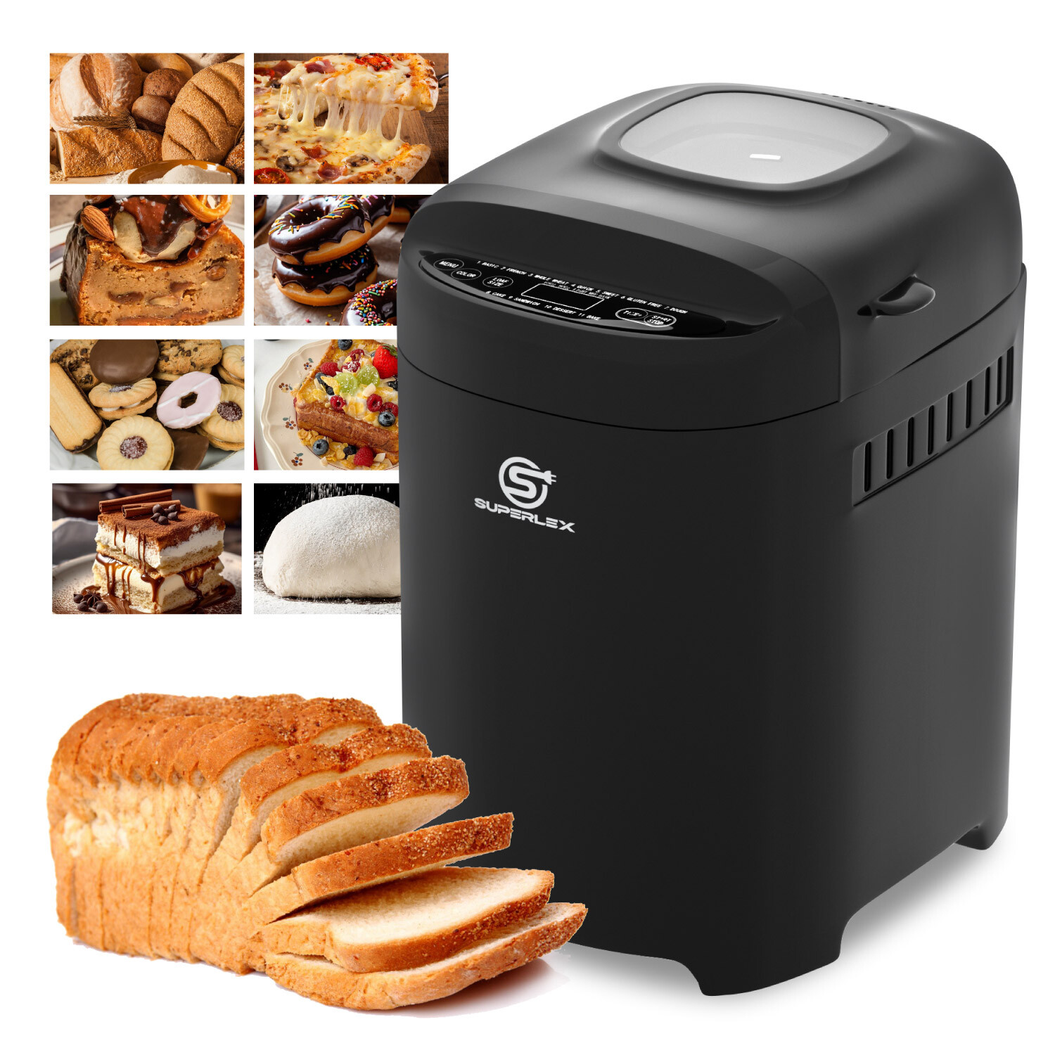 SUPERLEX 550W Bread Maker Mulit-Menus LCD Display Make Two Sizes Of Bread Black
