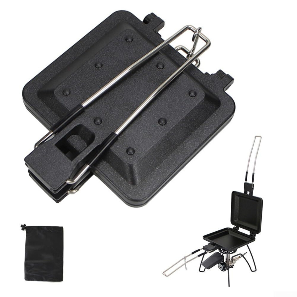Outdoor Foldable Portable Black Non-Stick Sandwich Maker Japanese Toast Double-Sided Frying Pan Bread Clip