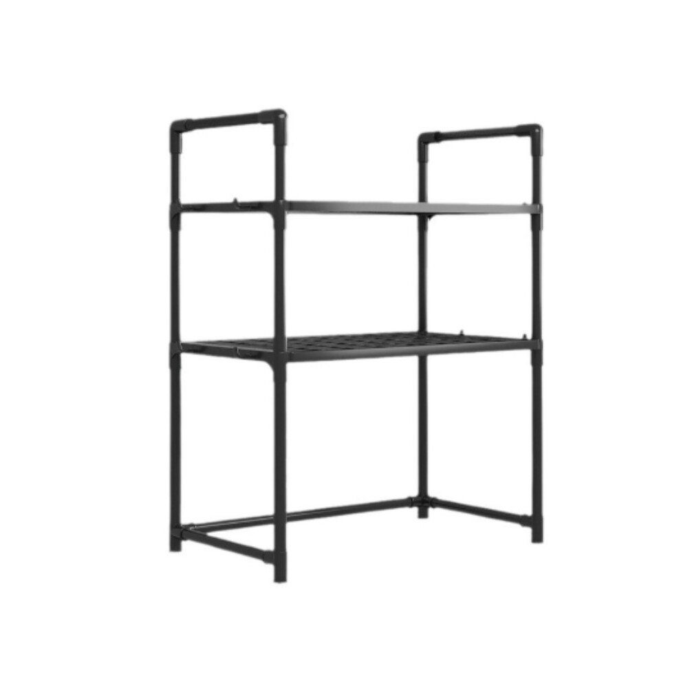 (2 Layers Of Black) 2-Layer Black Tiered Kitchen Utility Rack for Microwave, Oven, Bread Maker, Countertop or Wall Mount, Space-Saving