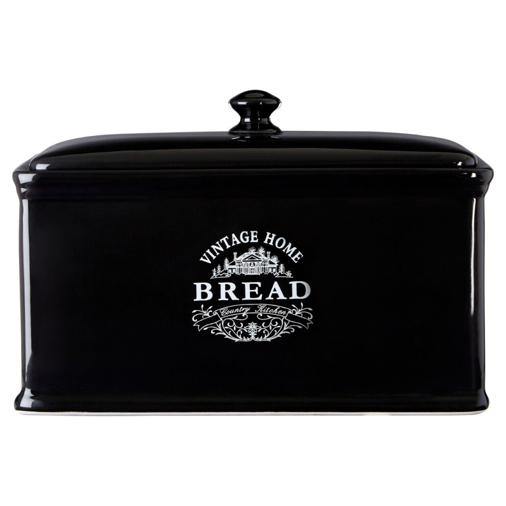 Vintage Home Bread Bin Black Ceramic Elegant Detail