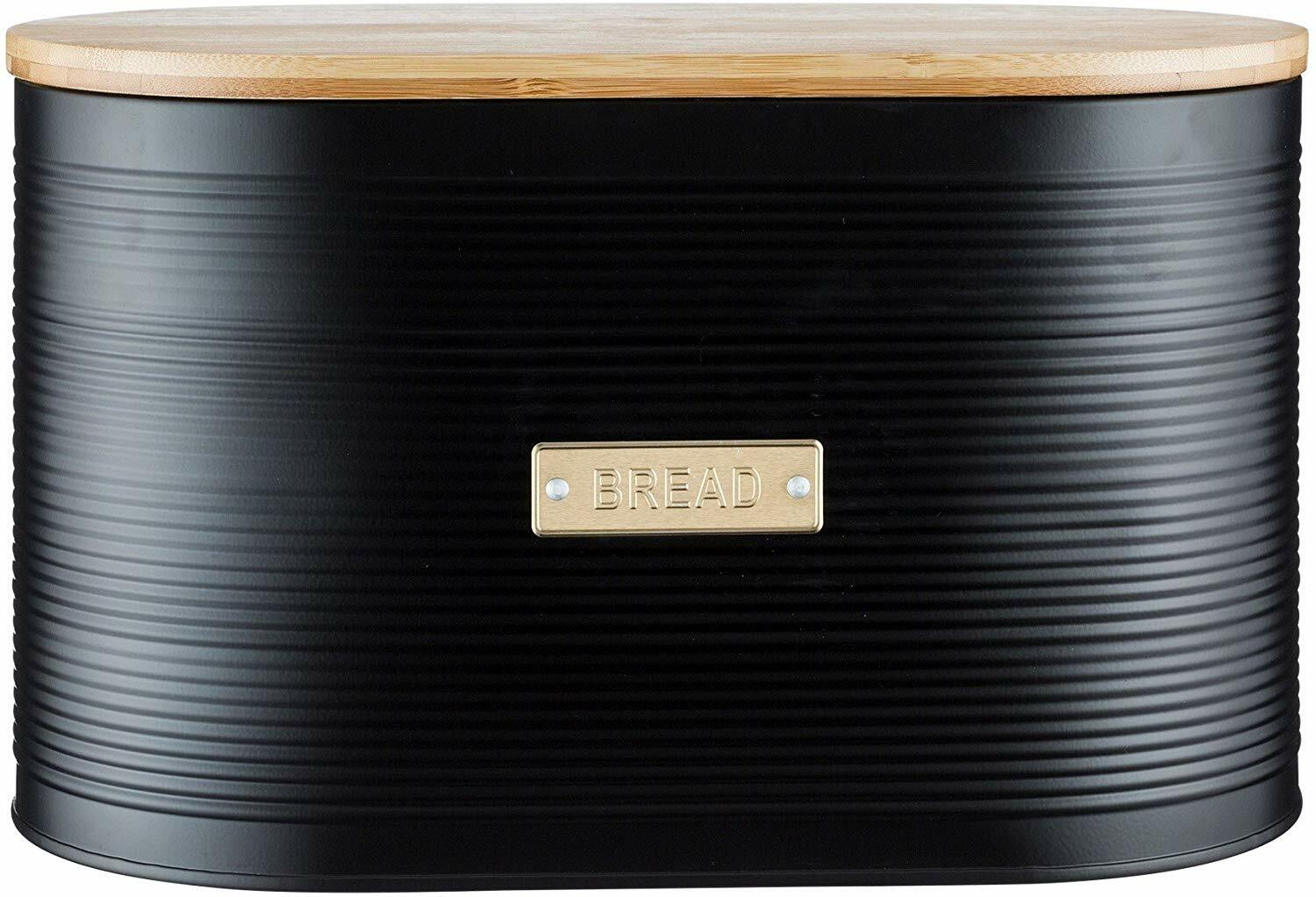 Typhoon Living Otto Bread Bin with Bamboo Lid Matt Black & Gold Loaf Store