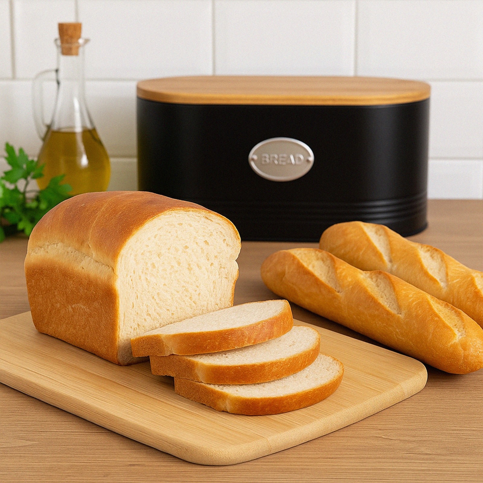 Large Bread Bin 15L Metal Black Loaf Bread Baked Storage Container Hinged Lid