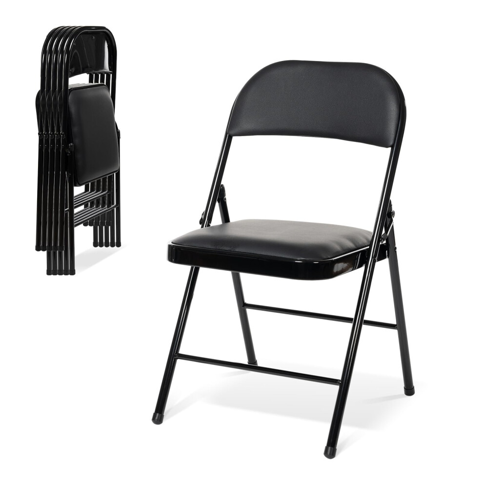 6 Pack Folding Chairs with Padded Leather Seats, Indoor Outdoor Event Seating, Black Portable Chairs for Home Office