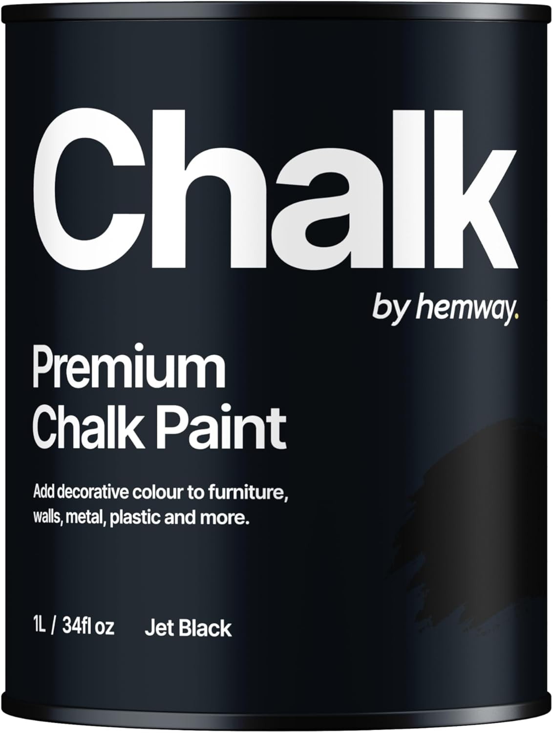 Hemway (Jet Black, 1L / 34floz) Chalk Paint - Chalky Matt Finish For Furniture & Walls