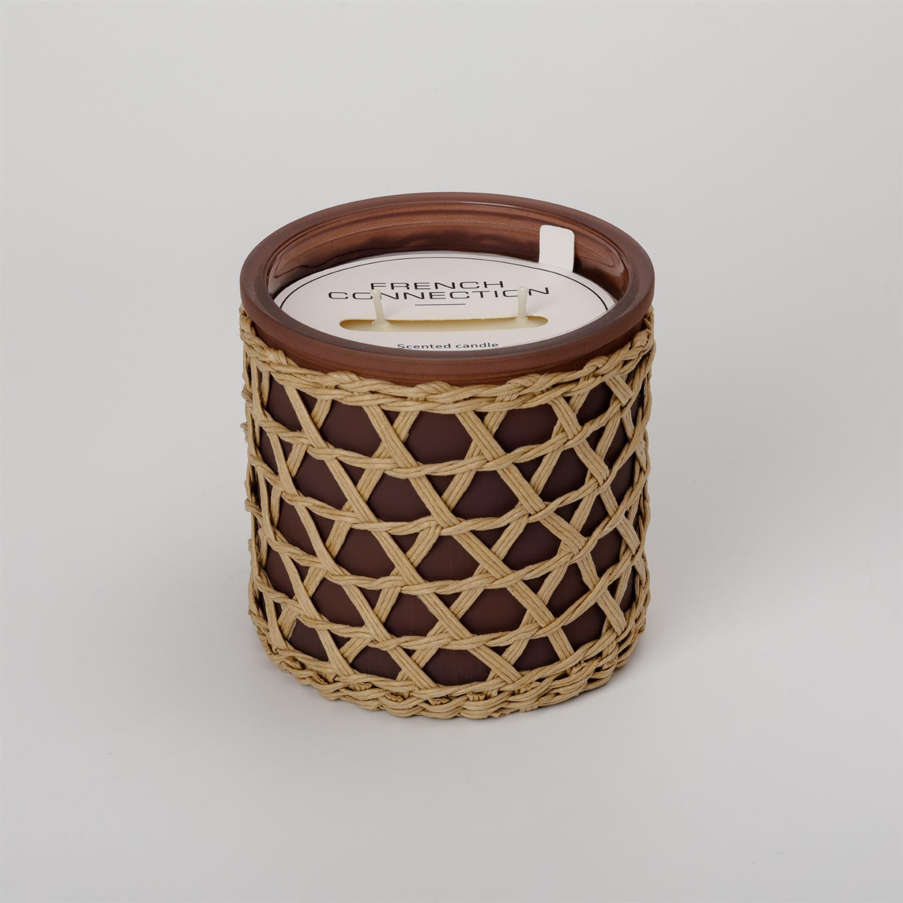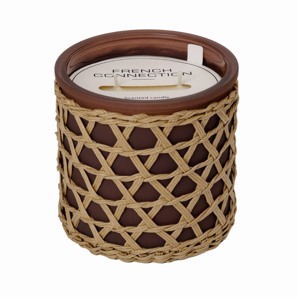 French Connection Woven Rattan Black Cherry & Cedarwood Candle – Long-Lasting Luxury Gift in Brown | Size: Large