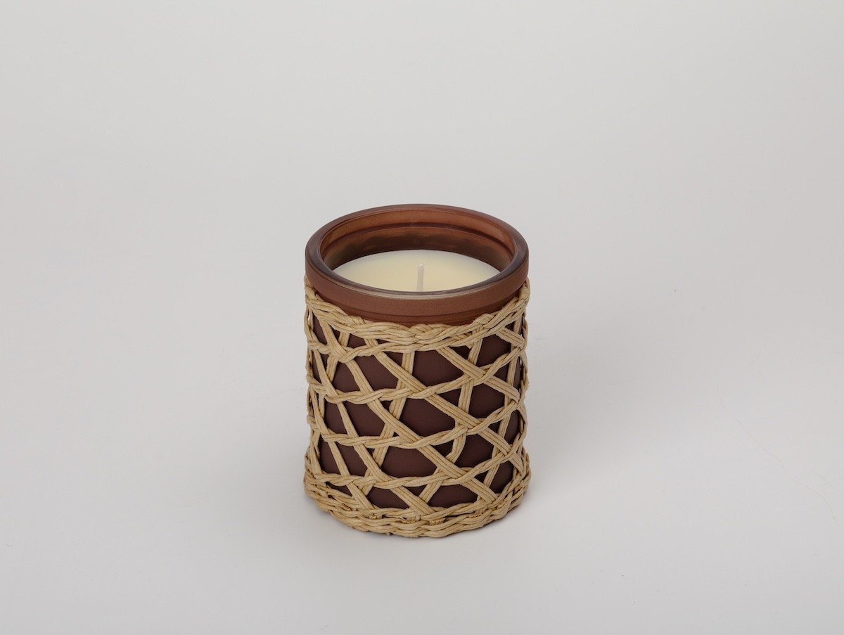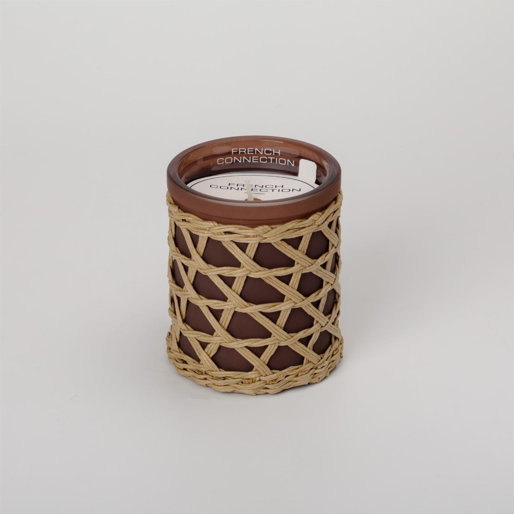 French Connection Woven Rattan Black Cherry & Cedarwood Candle – Long-Lasting Luxury Gift in Brown | Size: Medium