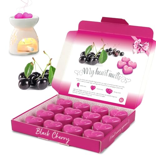 Black Cherry Wax Melts: 16 x 5g Heart Shaped Wax Melts Scented in a Presentation Gift Box, Vegan & Pet Friendly, Cruelty Free, Candle Alternative