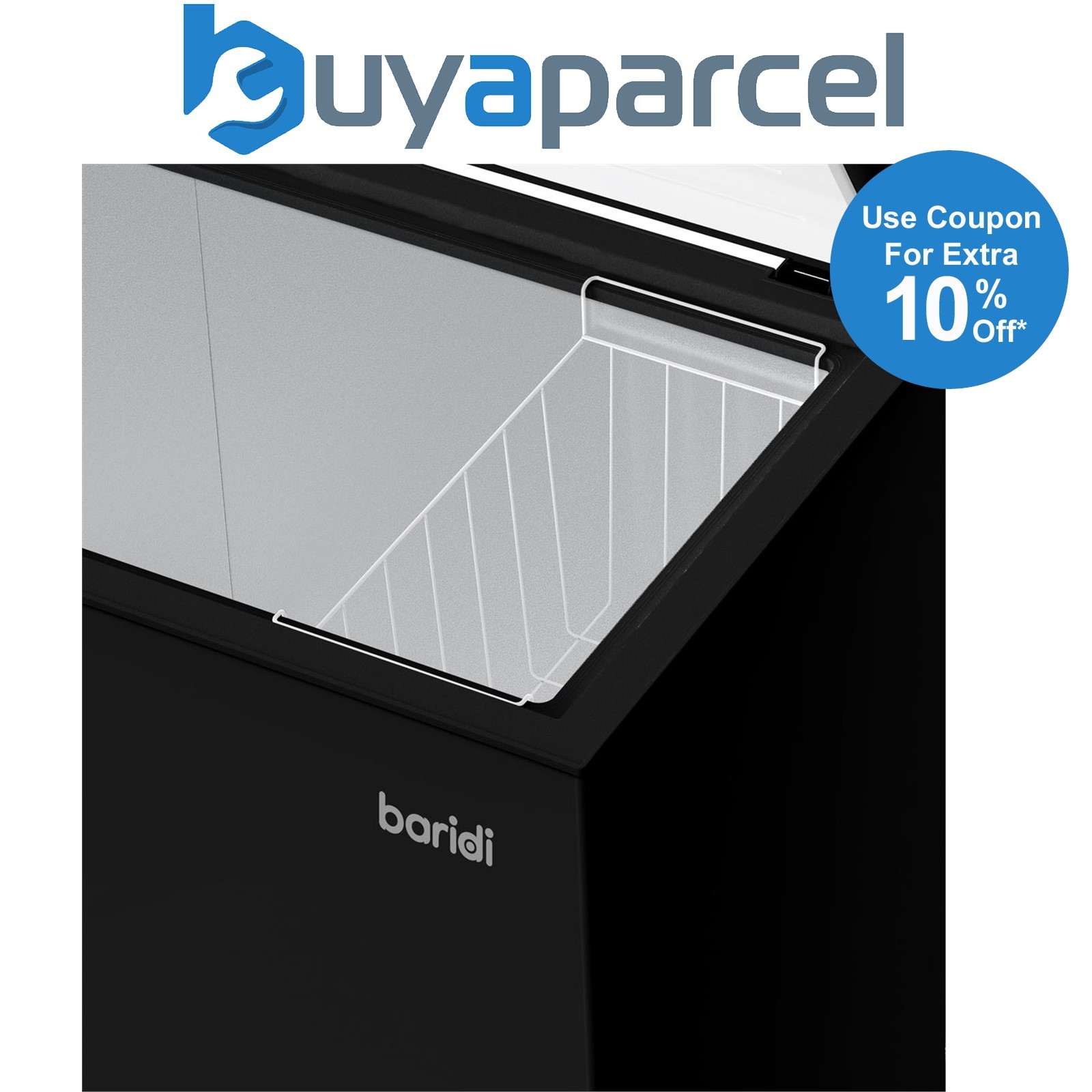 Baridi DH151 Freestanding Chest Freezer, 199L Capacity, Garages and Outbuilding Safe, -12 to -24°C Adjustable Thermostat with Refrigeration Mode, Black