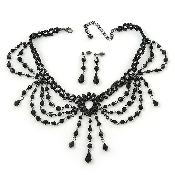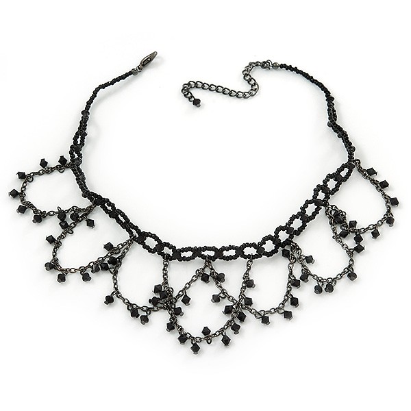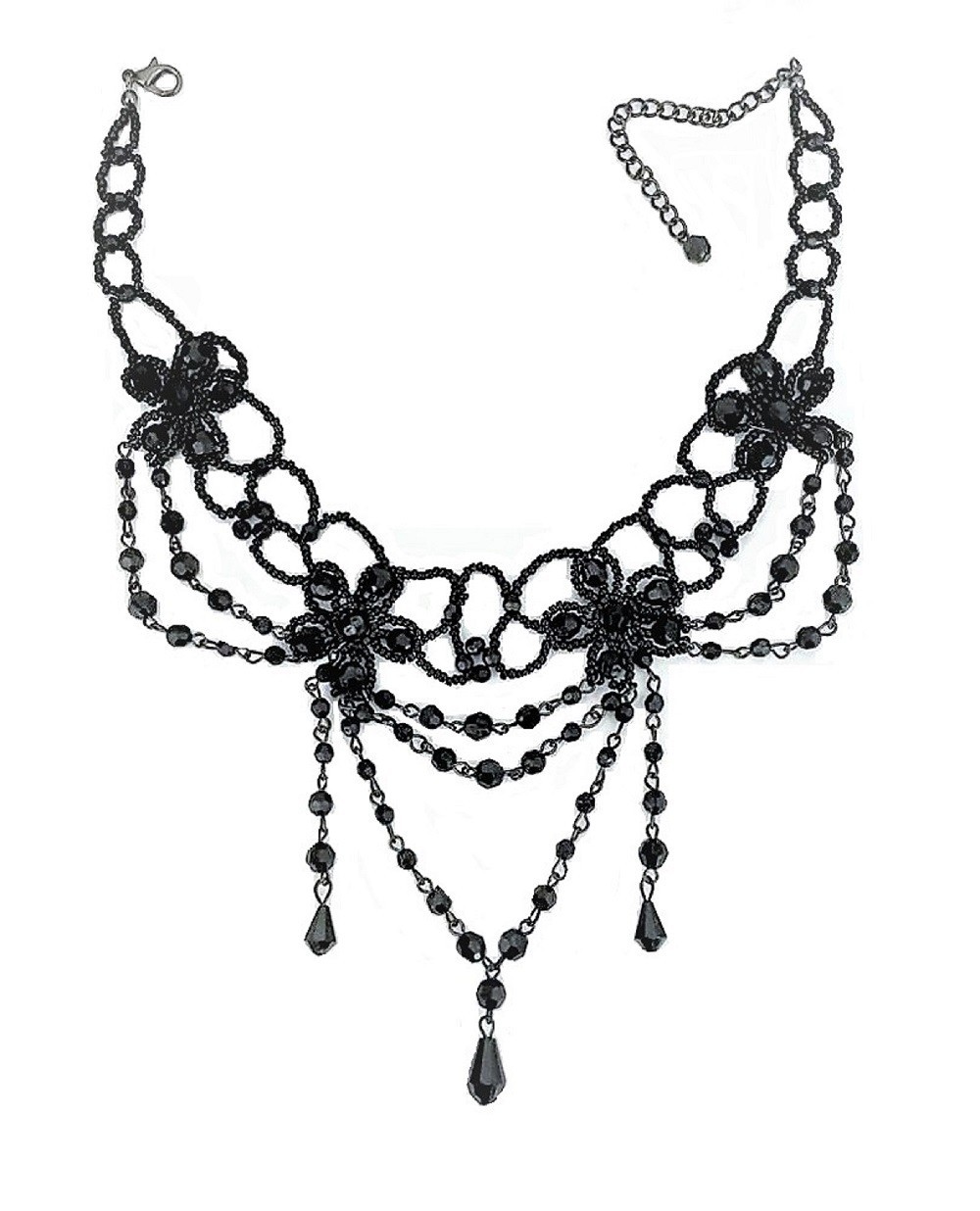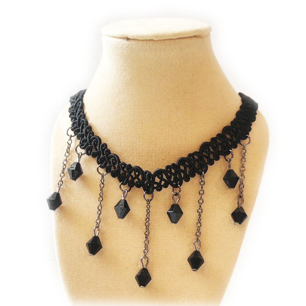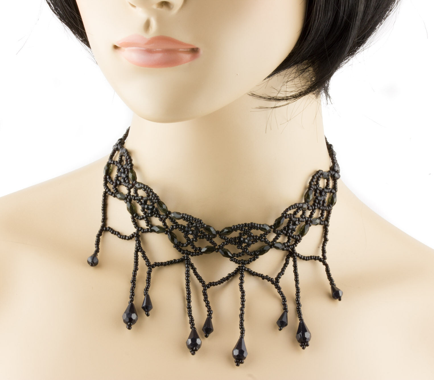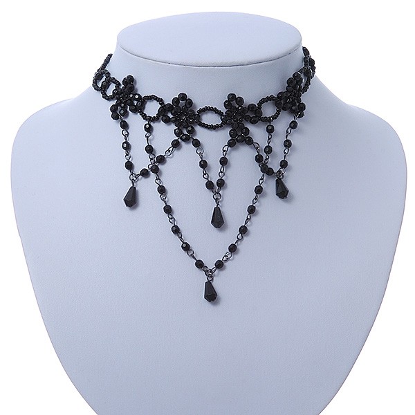 Vintage Style Drop Beaded Necklaces Black Beaded Gothic Choker Necklace 24404