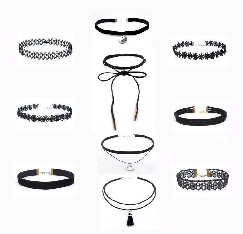 10 Pcs set Women Black Rope Choker Necklace Stretch Gothic Lace Party