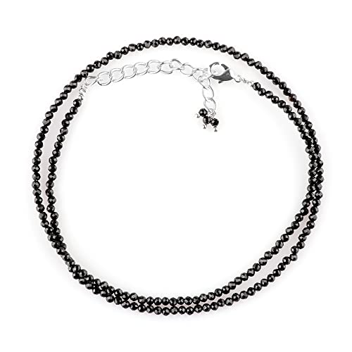 Gempires Natural Gift Black Tourmaline Choker Necklace Crystal Beaded Necklace Black Tourmaline Jewellery for Women 18 Inch Adjustable Silver Plated Chain