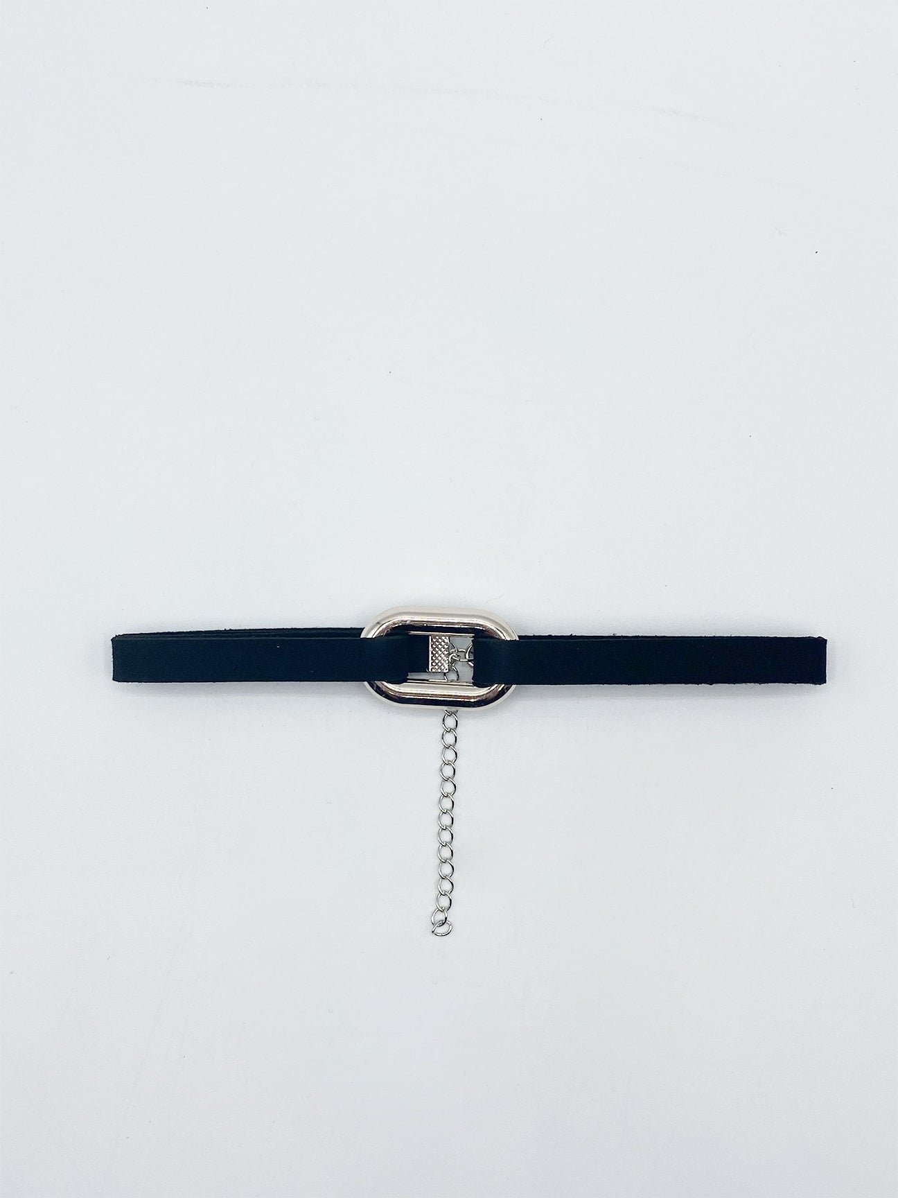 SVNX Womens Black Faux Suede Choker Necklace With Gold Tint Clasp Centre - One Size