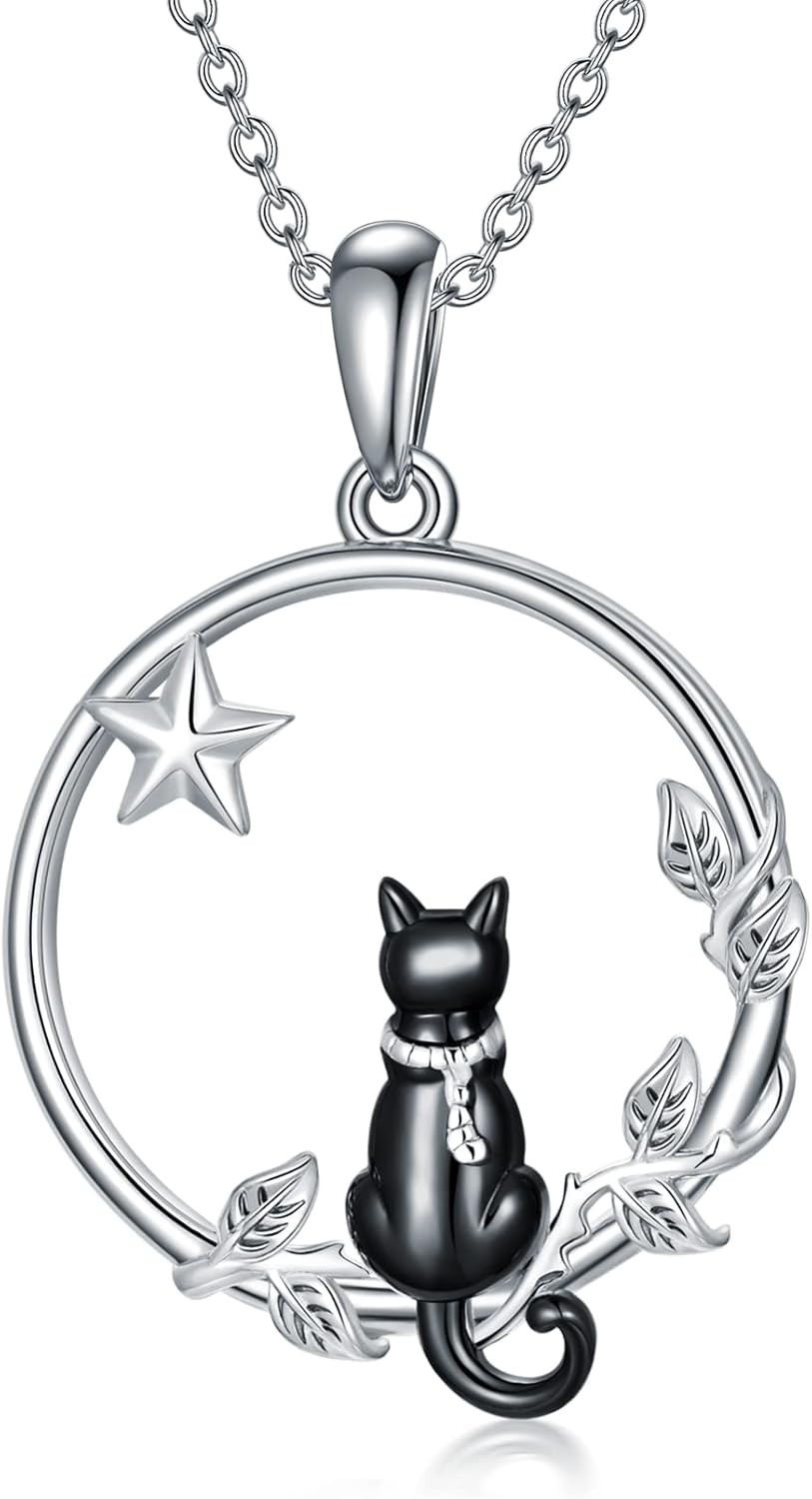 VONALA Cat Necklace 925 Sterling Silver Black Choker Necklace Jewellery Animal