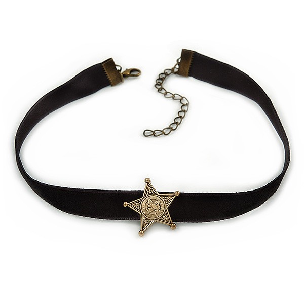 Retro Style Black Suede Lace Choker Necklace With Copper Star Pendant Charm