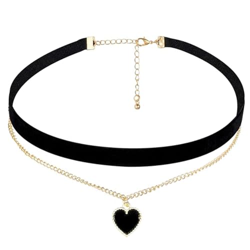 ZPLASK Classic Black Choker Necklace with Elegant Heart Pendant - Punk Rock Adjustable Layered Collar Jewelry for Girls