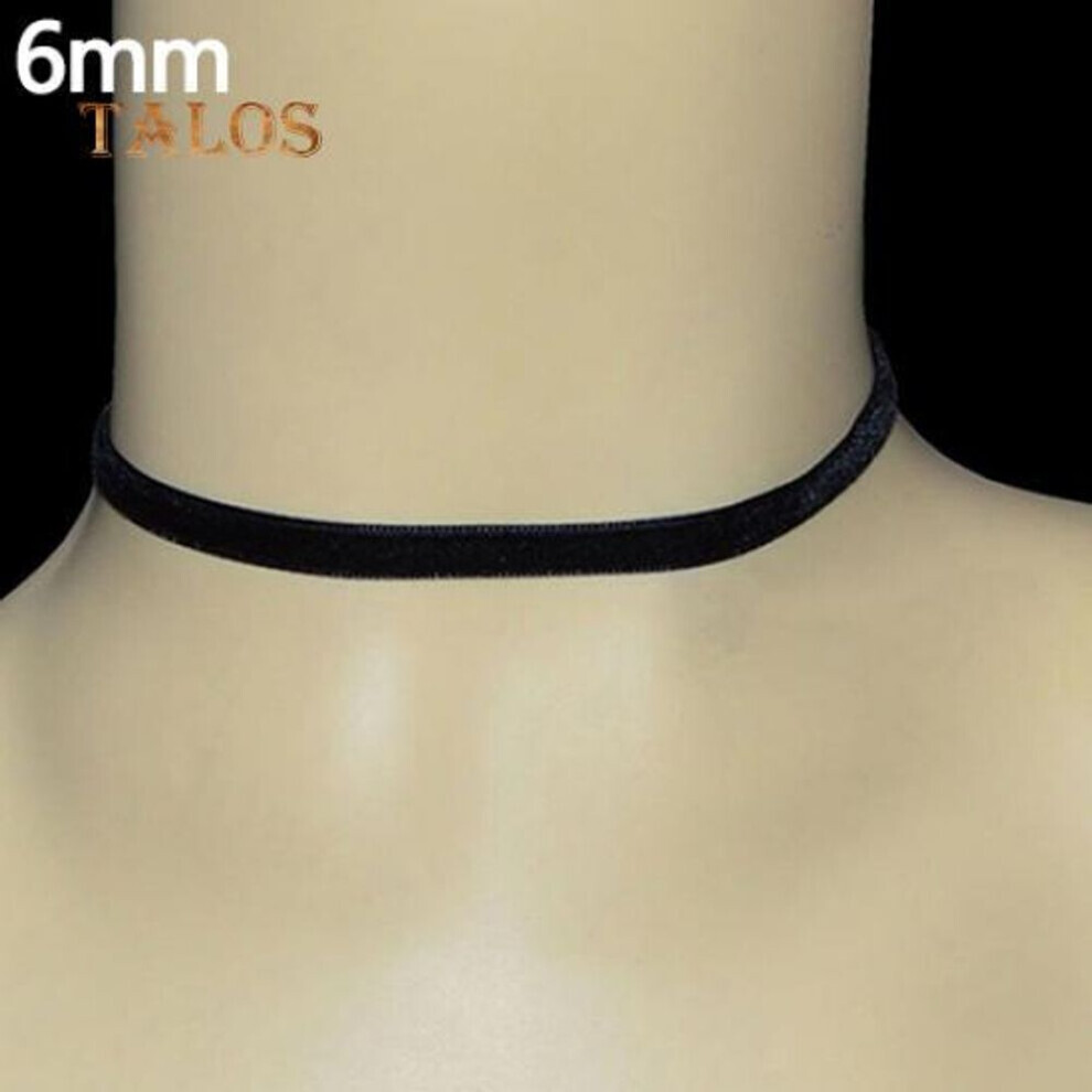 (Black Velvet 6mm) Women Lady Black Velvet Choker Gothic Necklace Simple Retro Jewelry Xmas Gift Suspension Trinket