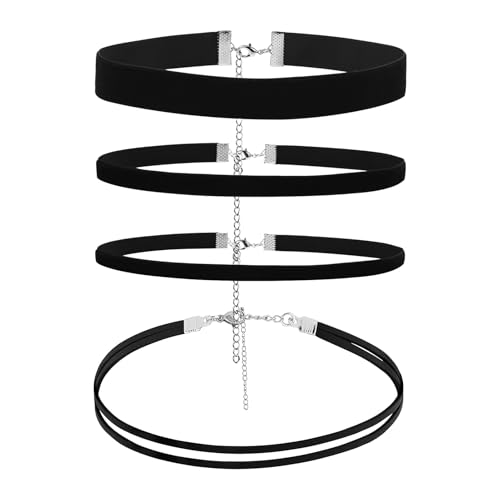 Black Choker Necklace for Women, 4 Pcs Adjustable Gothic Classic Collar Chokers, Velvet Necklaces Suitable for Girls and Women of All Ages