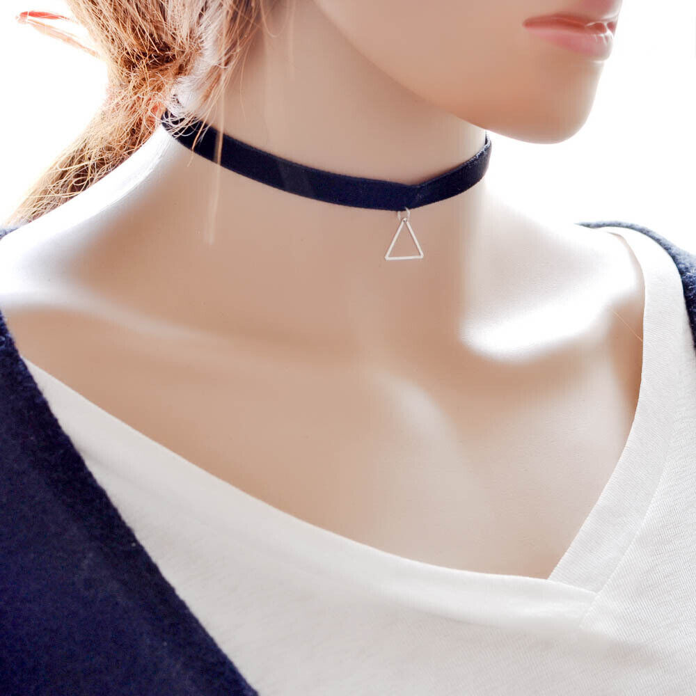 Retro Style Black Suede Choker Necklace With Triangle Pendant Charm