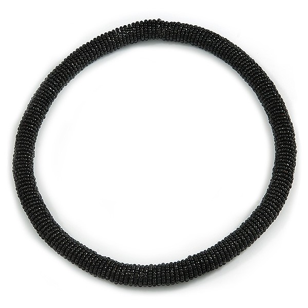 Statement Chunky Black Beaded Stretch Choker Necklace - 44cm L
