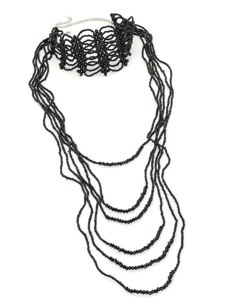 6 Row Black Beaded Choker Necklace Vintage Burlesque Women Gothic Gift Jewellery