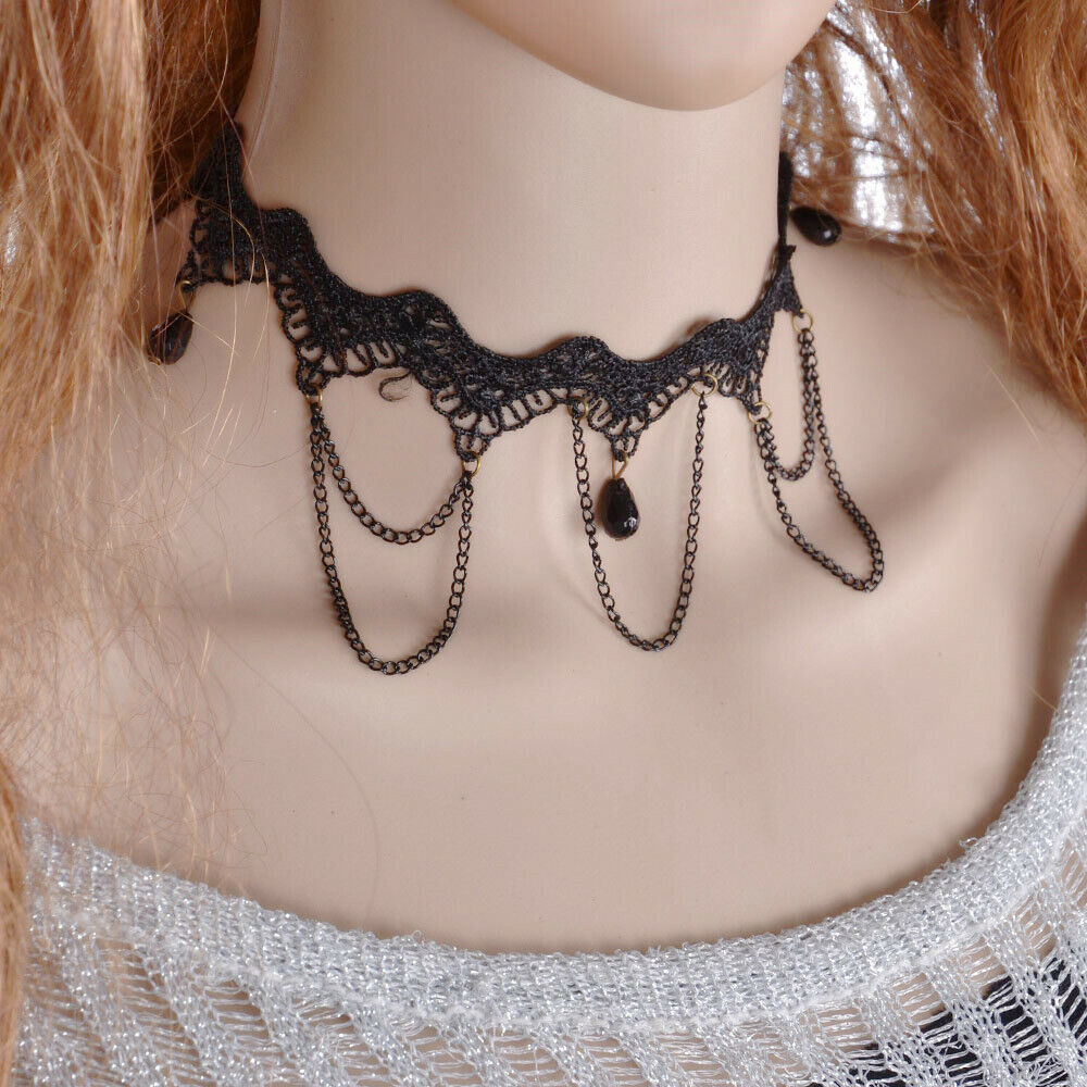💙Fashion 9 Pcs/set Black Rope Choker Necklace Stretch Gothic Lace Party💙