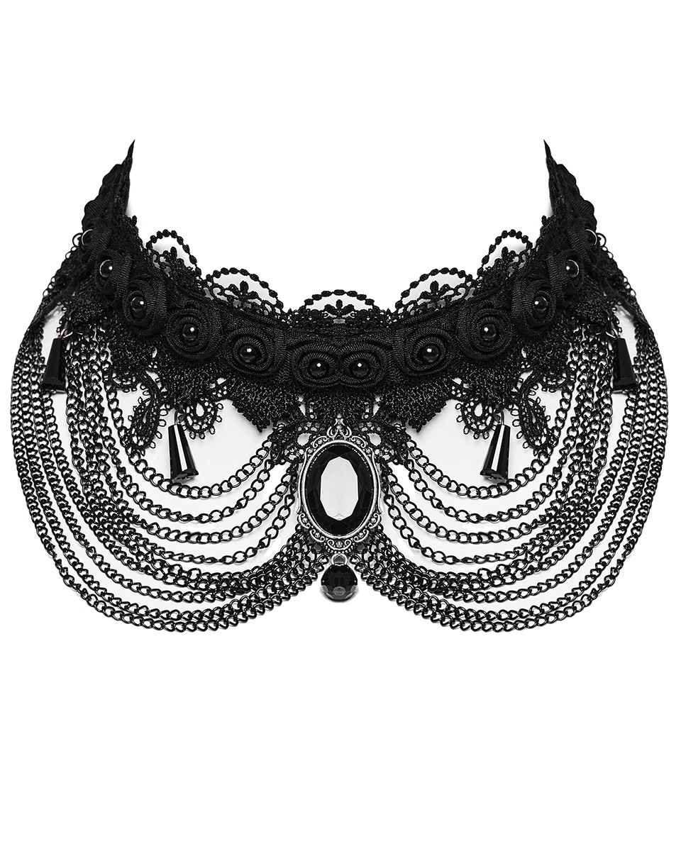 Punk Rave Womens Gothic Steampunk Chained Black Rose Cameo Choker Necklace