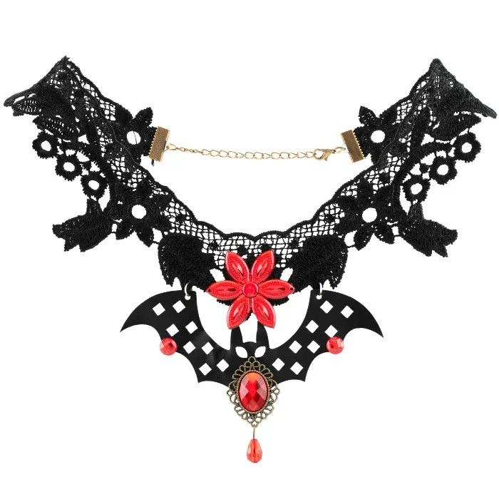 Black Lace Choker Necklace with Red Rose Gothic Halloween Costume Jewellery