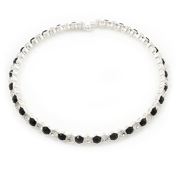 Silver Plated Clear/ Black Austrian Flex Choker Necklace