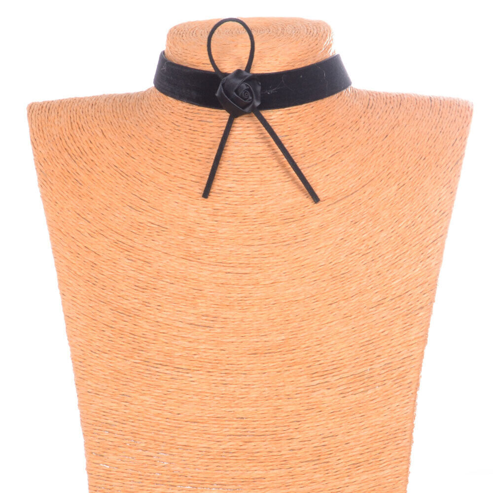 Black Suede Lace Choker Necklace With Large Rose Flower Pendant Charm
