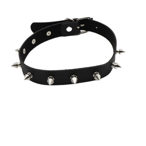 Black Studded Leather Choker Necklace Punk Accessories for Women Men Adjustable PU Leather Collar Choker Vintage Gothic Punk Rock Choker Spiked Collar Fancy Dress Gothic Necklace Novelty Accessory
