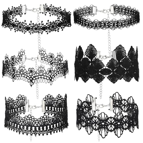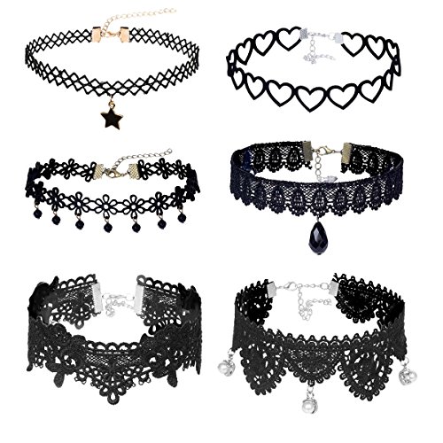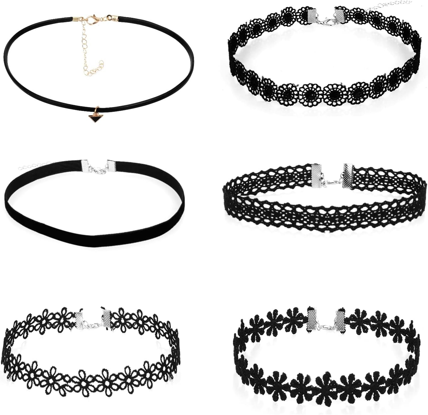 Yolev 6 Pieces Black Lace Choker Necklace Set Velvet Choker Classic Choker Neck