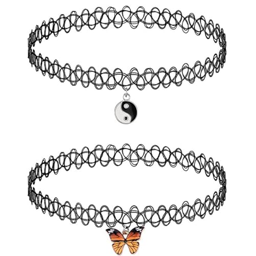 LilaLemon 2 Pcs Black Tattoo Choker Necklace Set, Stretchy Henna Jewelry 90s Choker Necklace Accessories, Black Pendant Charm for Woman Teen Girls Jewelry Gift Summer Style