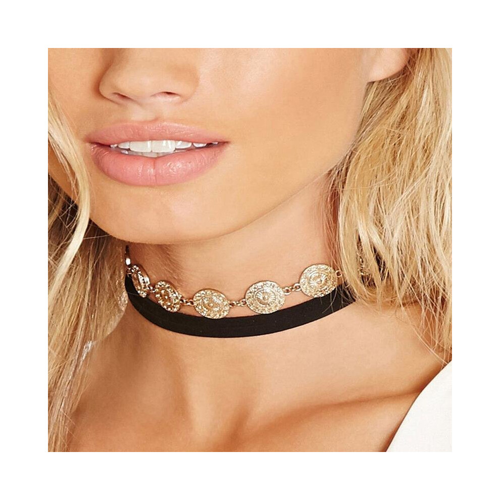 Yanqueens Vintage Coin Charms Black Velvet Choker Necklace Torques Women Collar Statement Jewelry for women