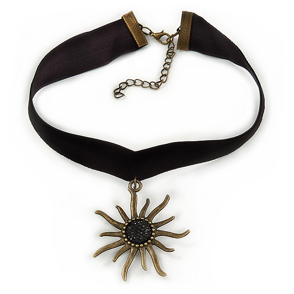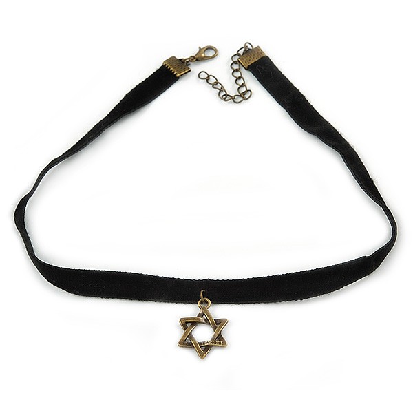 Black Velour Choker Necklace with Antiqure Gold Tone Star Pendant - 30cm L/ 6cm