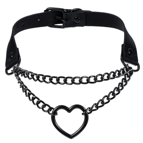 Grevosea Choker Collar for Women, Adjustable Heart Shape Goth Necklaces Black Leather Choker Necklace 80s Rave Punk Necklace for Halloween Cospaly Goth Accessories