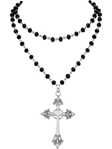 Hanary Goth Layered Cross Necklace for Women, Black Choker Necklace, Y2k Jewelry for Women