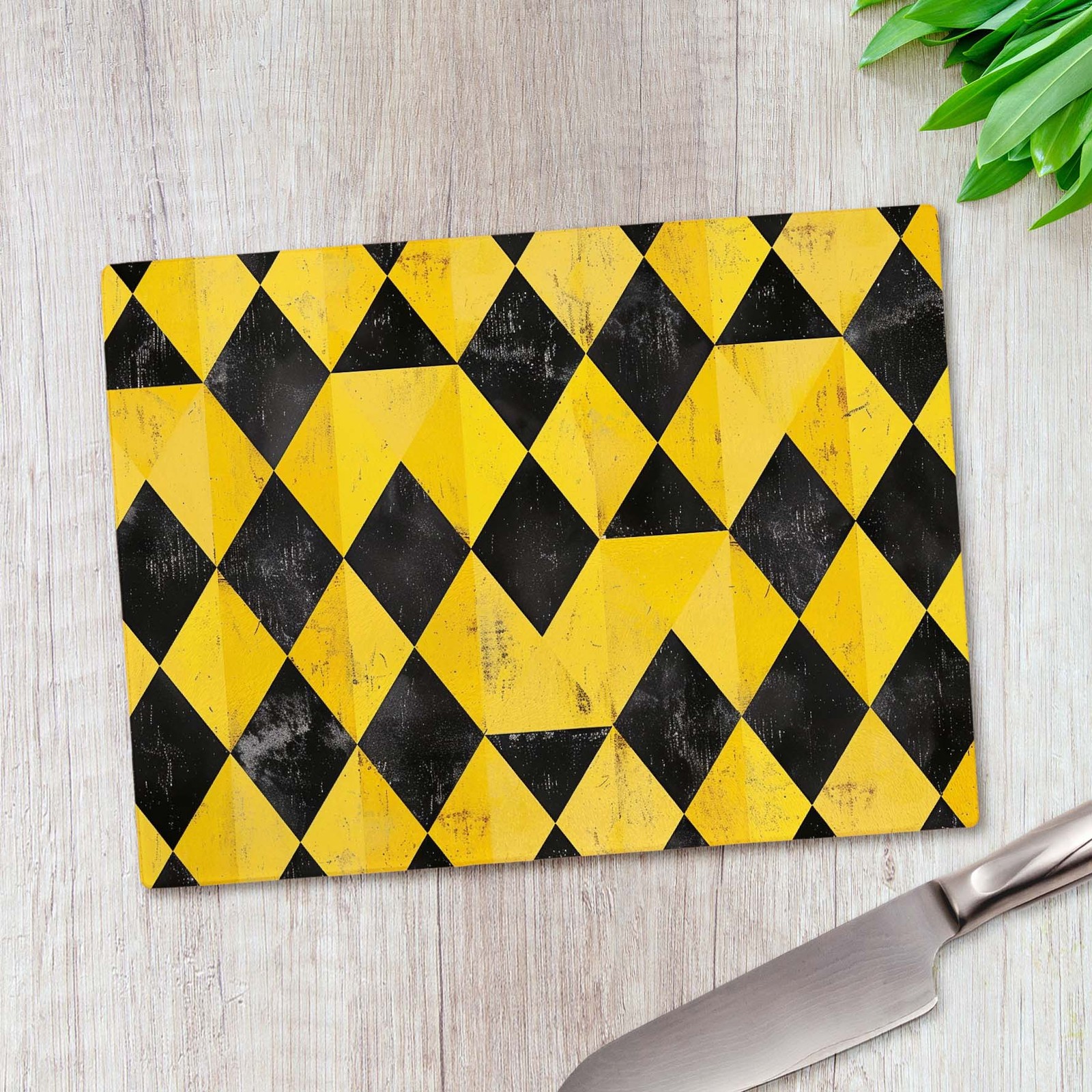 Harlequin Diamond Black Yellow Glass Chopping Board Large Kitchen Worktop Saver