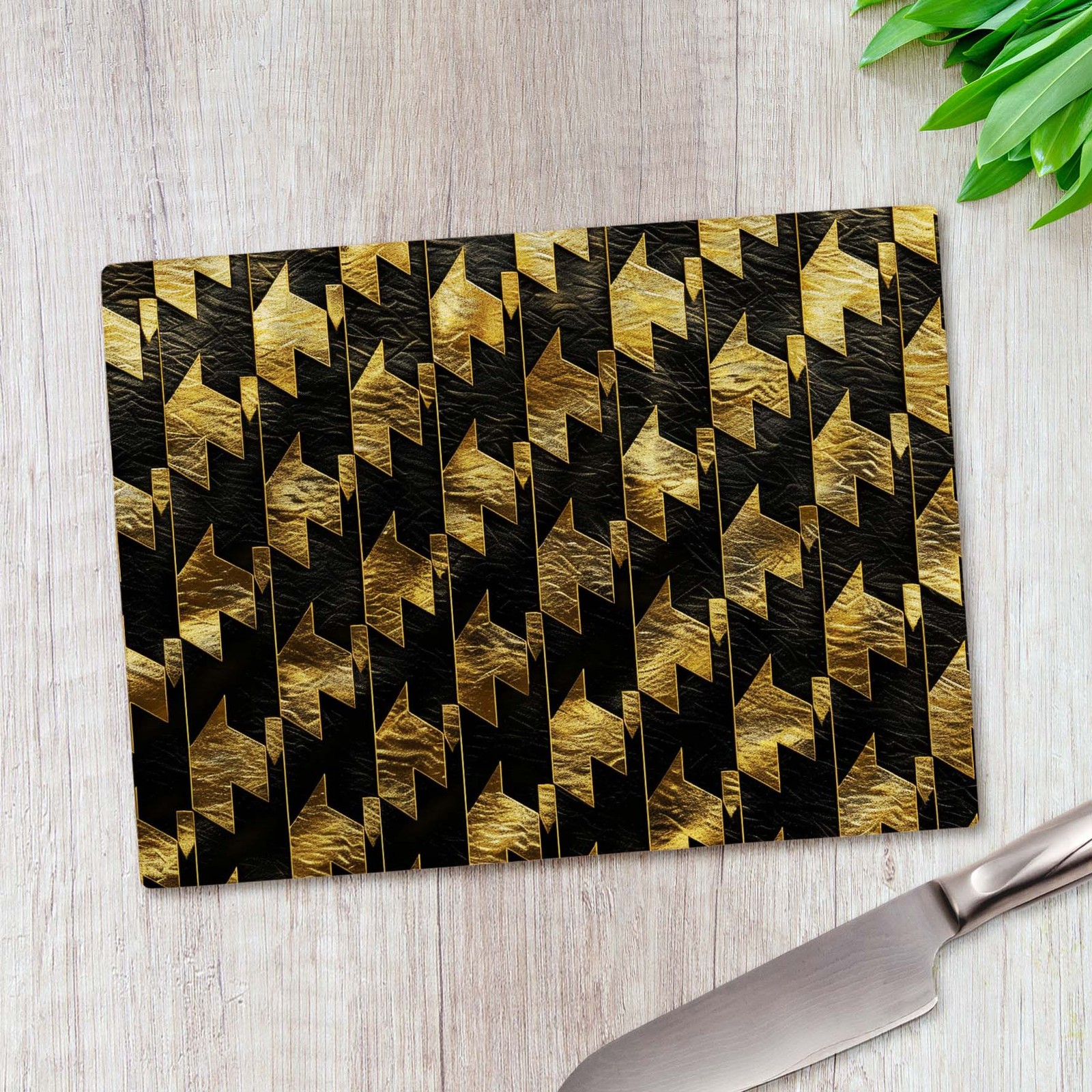 Gold and Black Houndstooth Glass Chopping Board Large Kitchen Worktop Saver