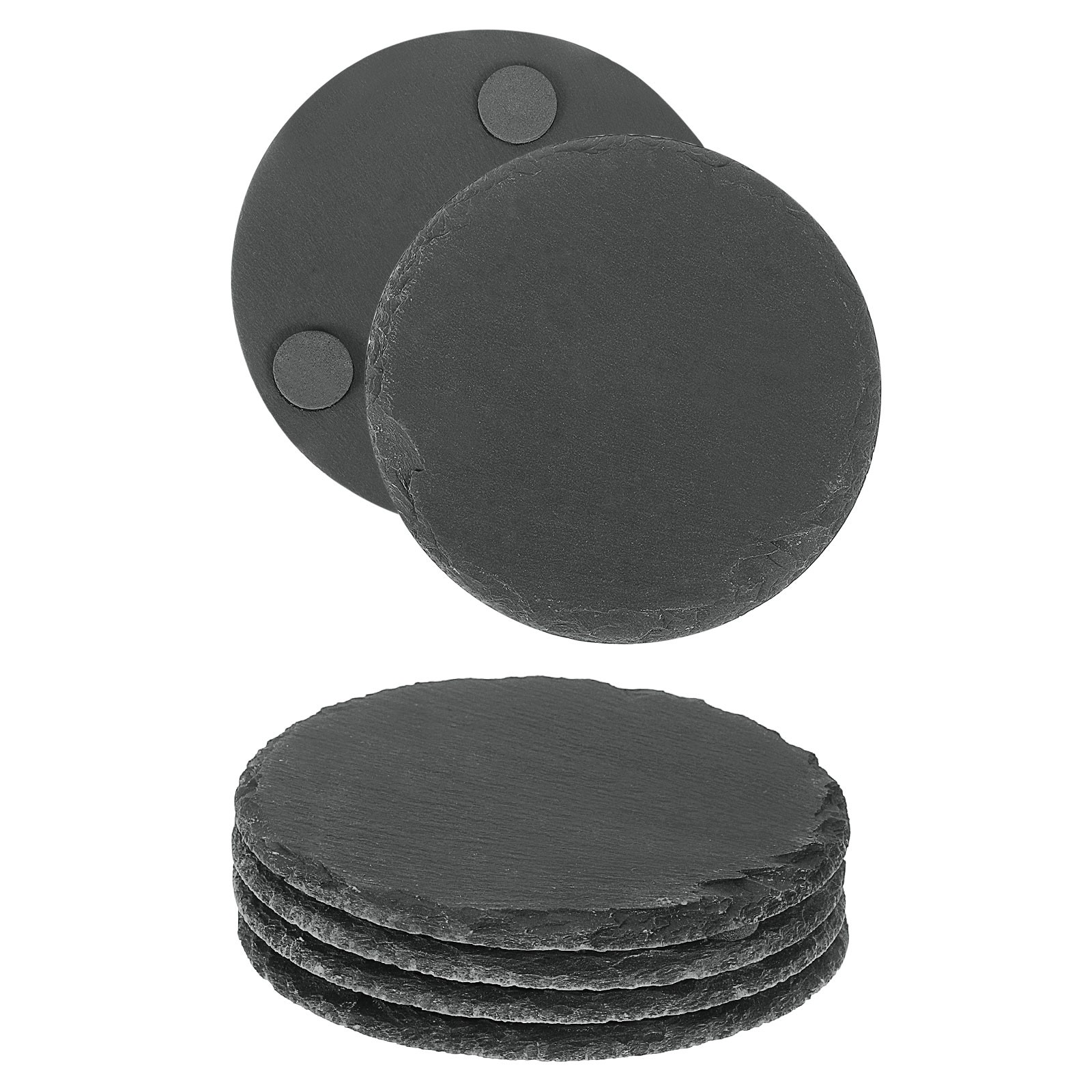 6pcs Round Slate Drink Coasters, 4 Inch Black Slate Stone Coasters