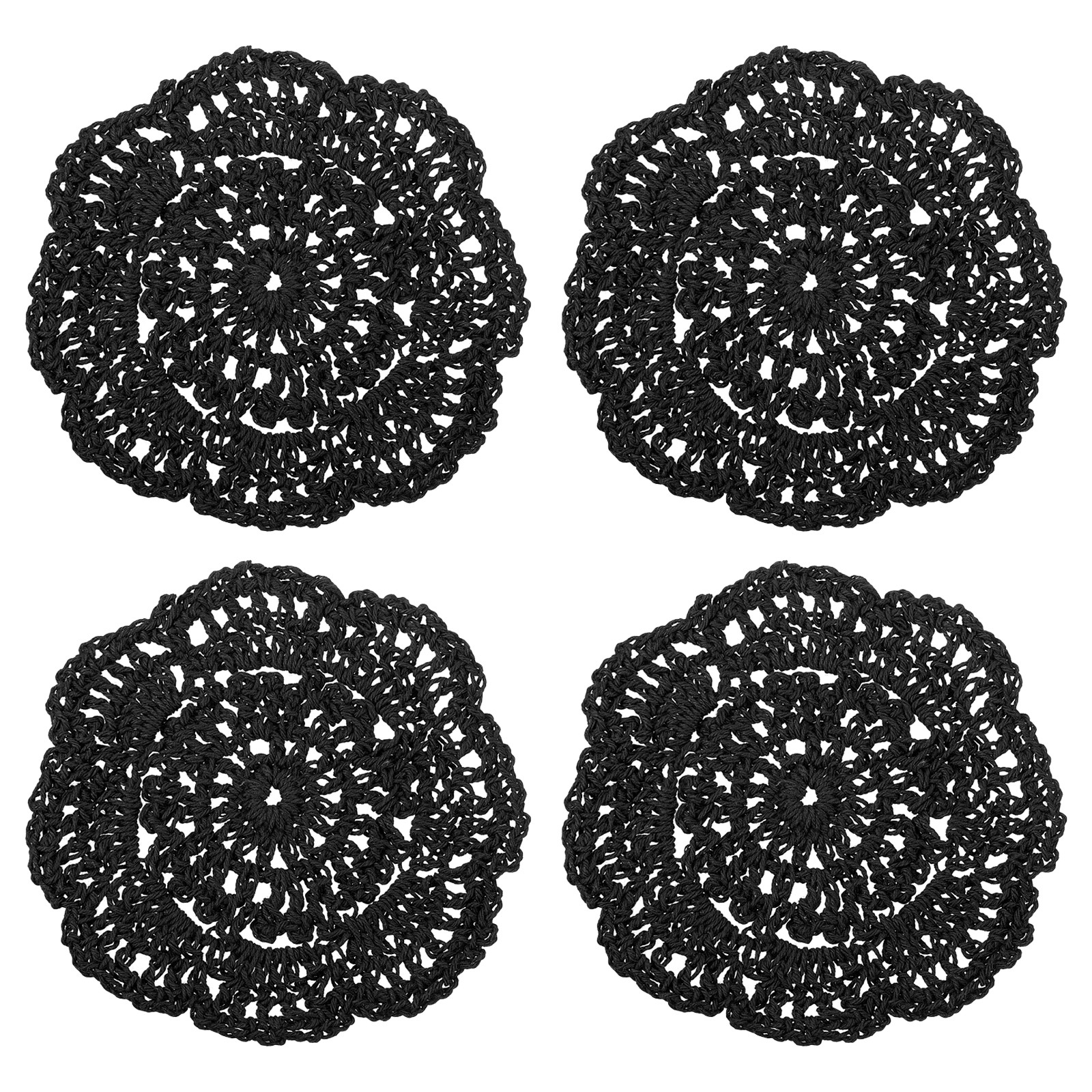 Crochet Doilies, 4Pcs 4" - Cotton Woven Round Fabric Coasters (Black)
