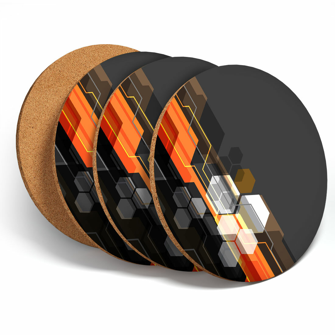 4 Set - Retro Black Orange Print Coasters - Kitchen Drinks Coaster Gift #12884