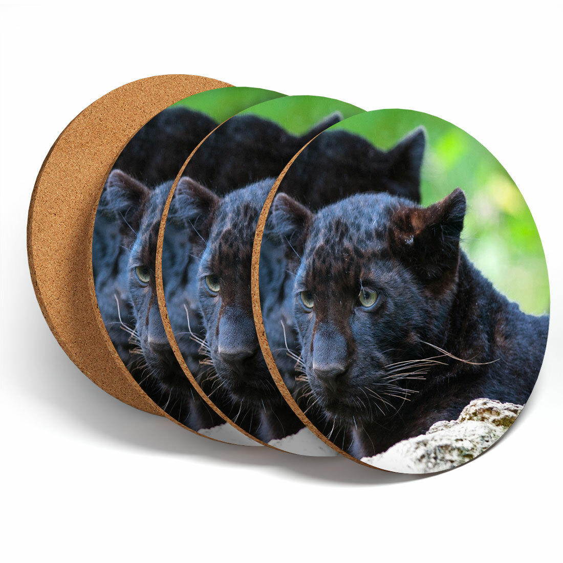 4 Set - Wild Black Panther Cat Coasters - Kitchen Drinks Coaster Gift #3549