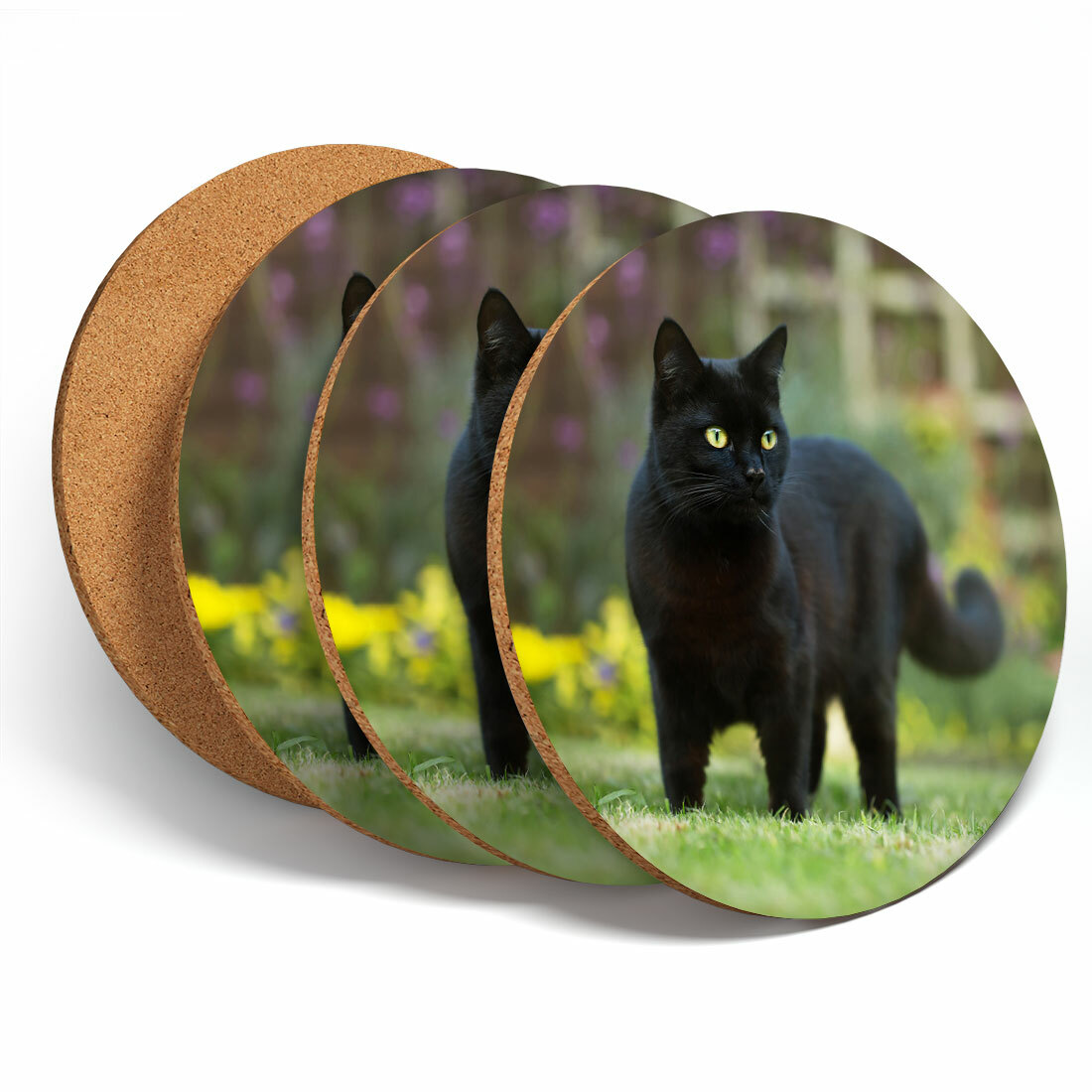4 Set - Hunting Black Kitten Pet Coasters - Kitchen Drinks Coaster Gift #2604