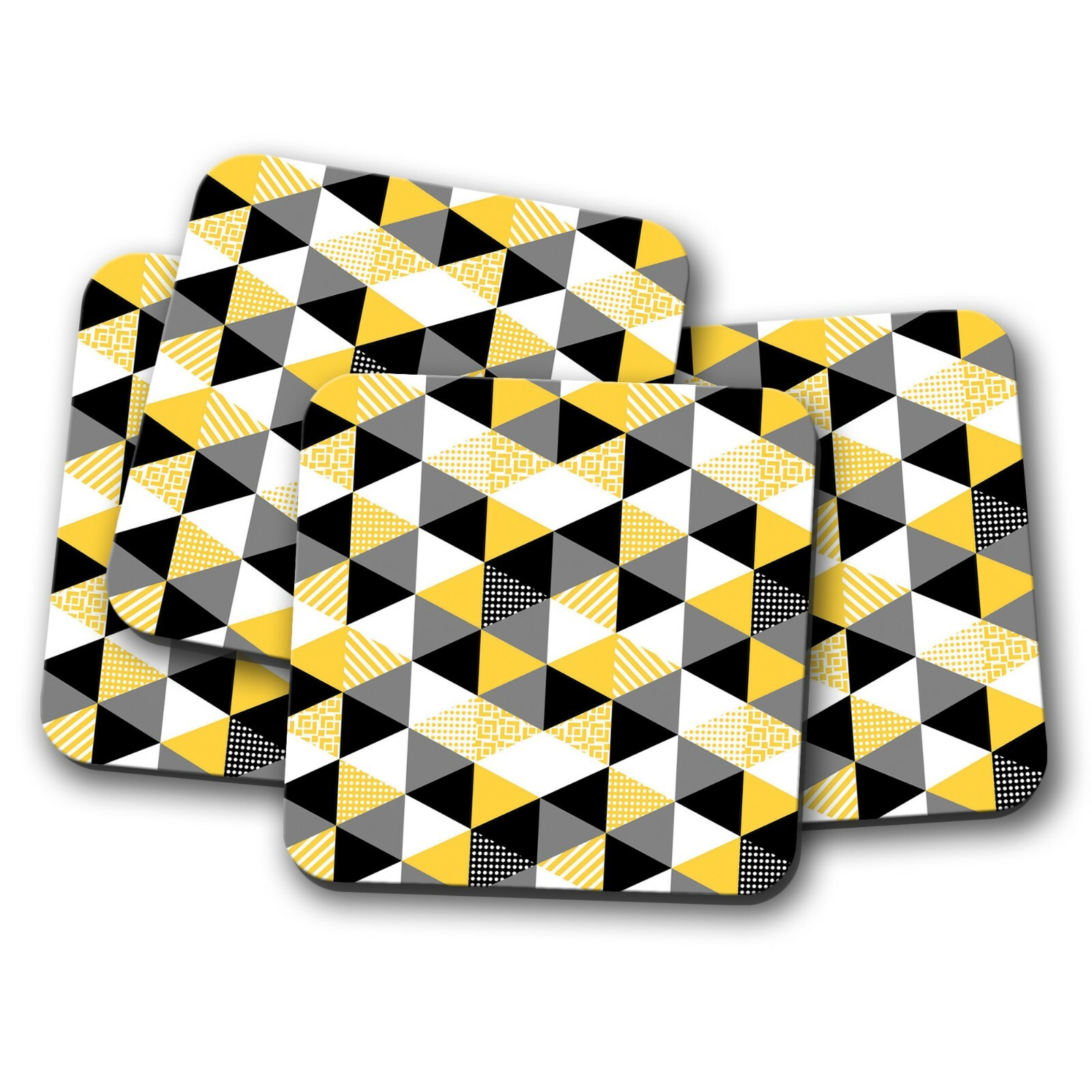 4 Set - Cool Yellow Black White Geometric Coasters - Kitchen Drinks Gift #3296
