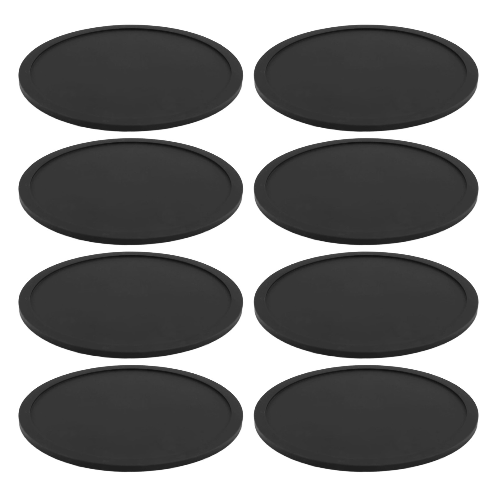 3X(Silicone Black Drink Coasters Set of 8 Non-slip Round Soft Sleek and 8022