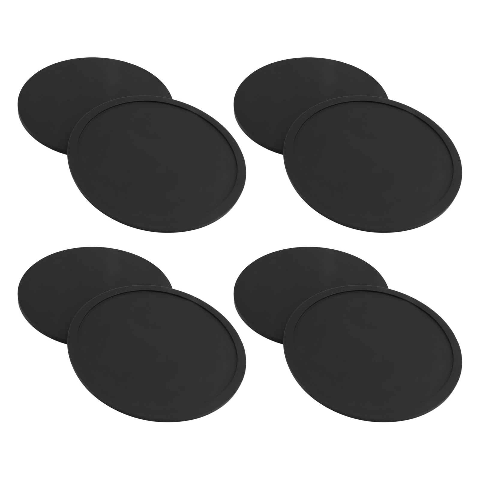Silicone Black Drink Coasters Set of 8 Nonslip Round Soft Sleek and